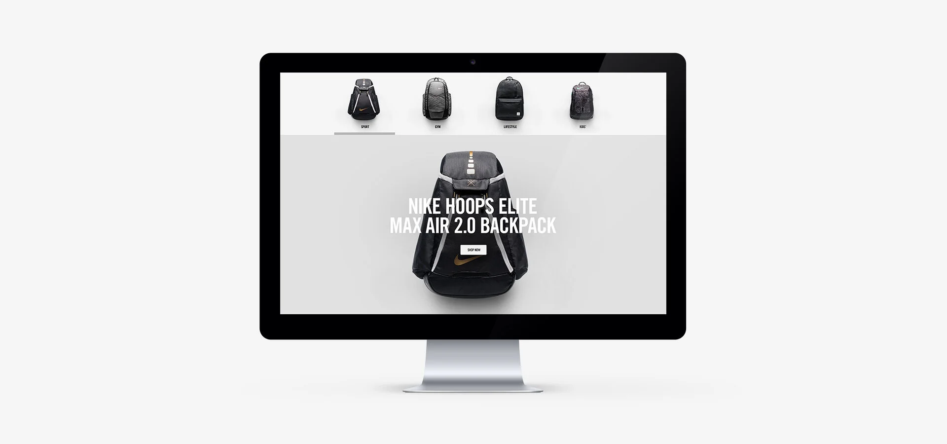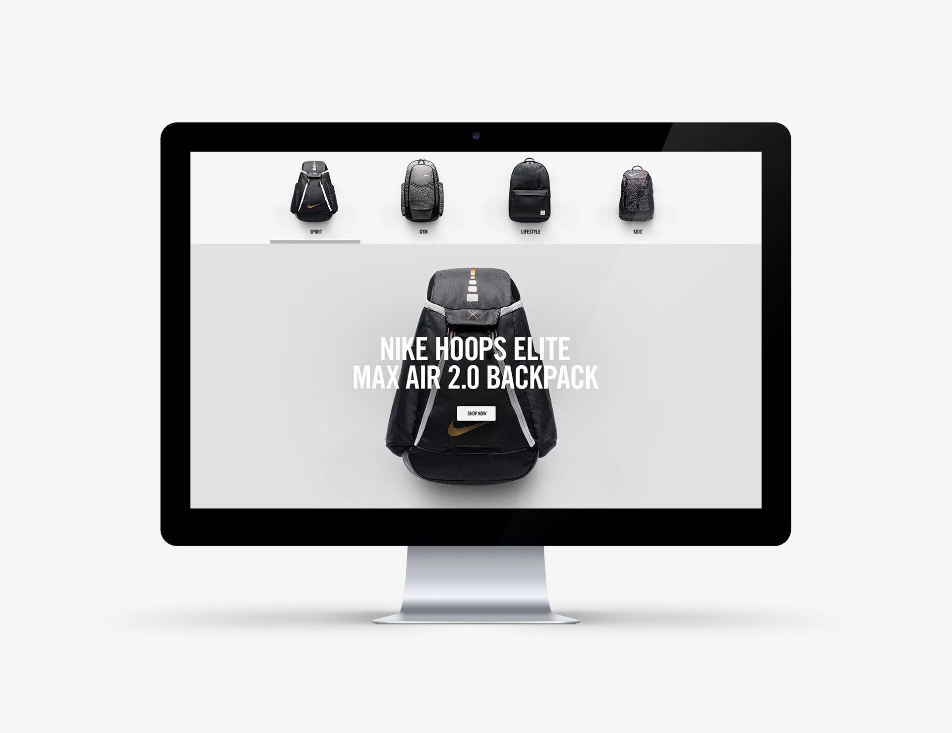 Integrated multi-channel digital commerce campaign to elevate product innovation and create premium brand experience featuring Nike bags and backpacks. Main campaign visuals and product photography below features the Nike Hoops Elite basketball backpack.