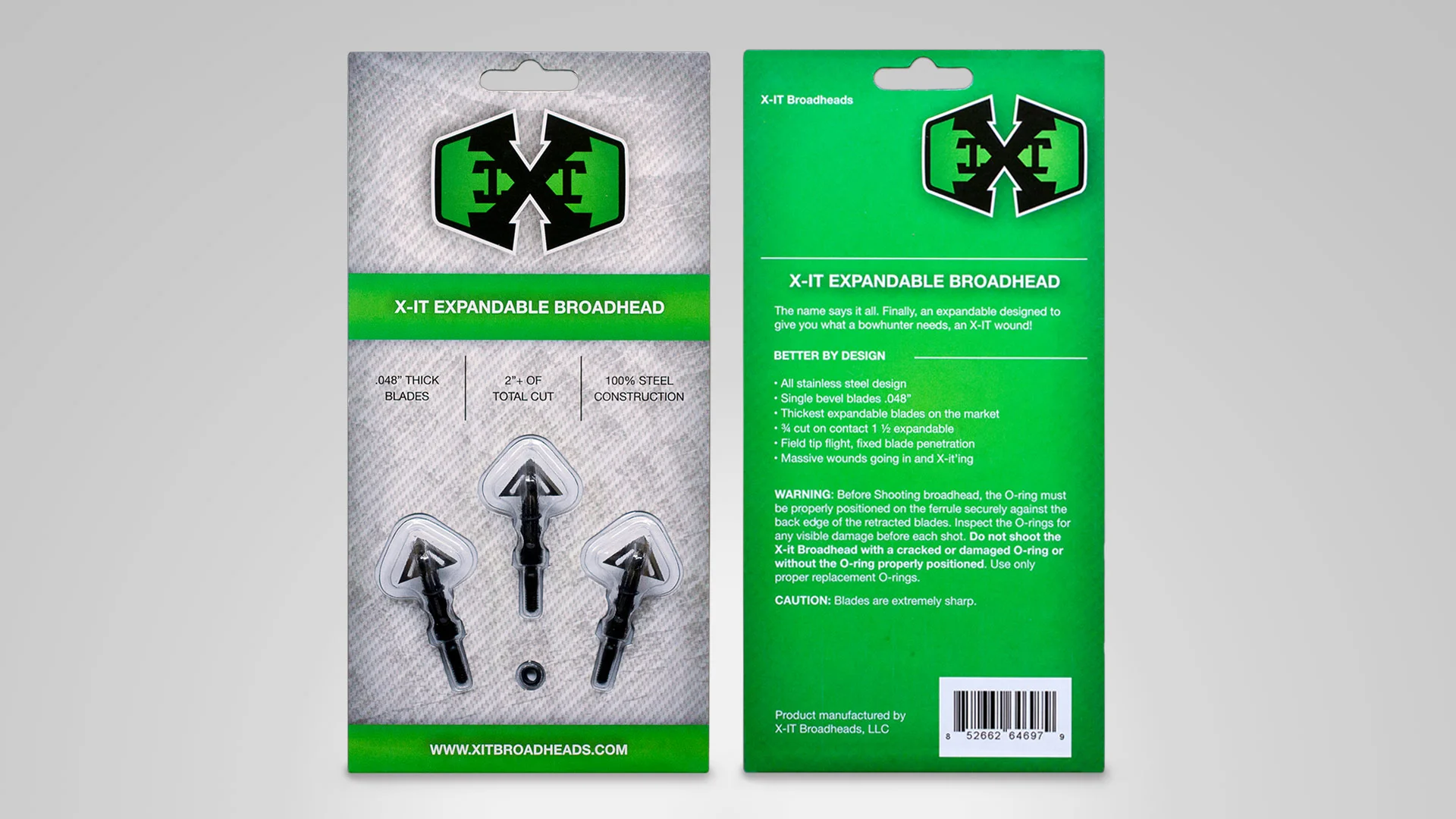 Developed brand, identity and package design for outdoor sport mechanical broadhead startup.